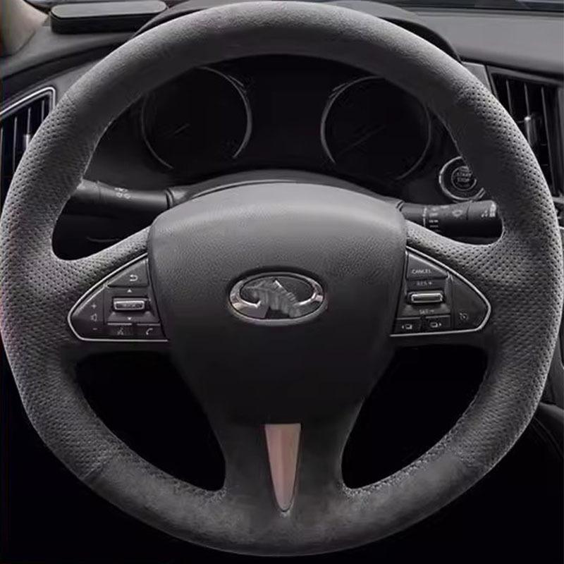 Ręcznie szyta antypoślizgowa osłona kierownicy samochodowej z zamszu do Infiniti Q50 2013-2017 QX50 2015-2017 Części samochodowe