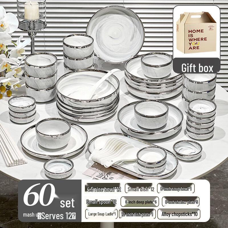 Wuve European Marble Ceramic 60-Piece Dinnerware Set