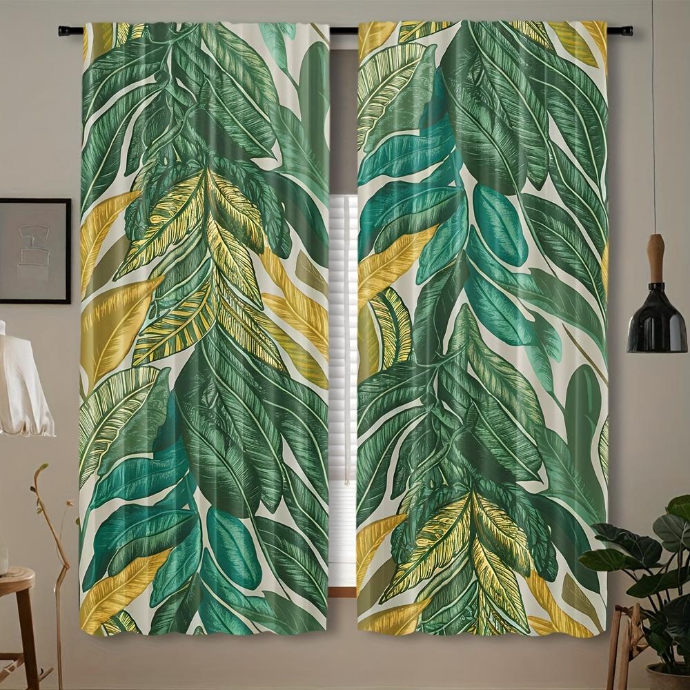 2pcs Palm Leaf Print Semi-Sheer Curtains - Rod Pocket Window Treatments for Bedroom Living Room Office Kitchen Study - Conte