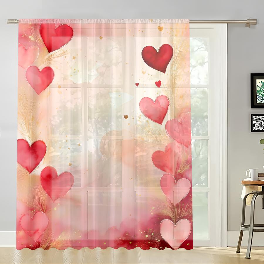 1PCS pink heart-shaped gauze curtain romantic style perfect for Valentine's Day suitable for both bedroom and living room