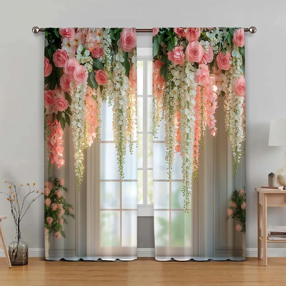 2pc Drapes Pink Flowers Delivery1 Blackout Polyester Birthday Party Applies to Office decoration