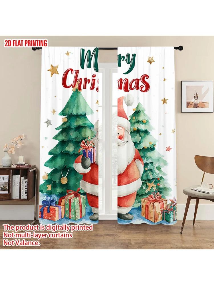 2pc 2D plane printing Curtains&Window Treatment Santa Claus Polyester Fabric (without rod) Gifts Perfect for Kitchen Bedroom &