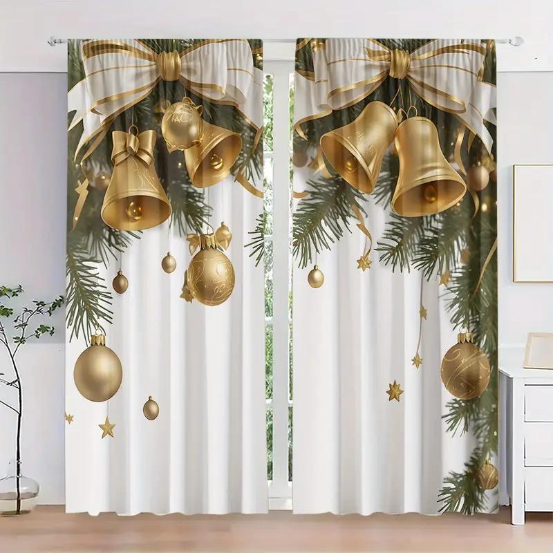 2pcs Christmas bell curtains pole pocket design privacy protection suitable for decorating various scenes