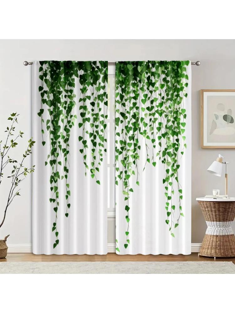 2pcs Pattern Curtains print Green rattan Machine Washable (without rod) Decorations Outdoor Ldeal for Living Room Bedroom &