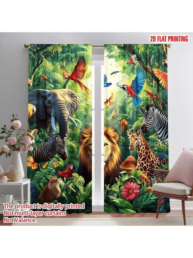 2pcs plane printing Contemporary Curtains arboreal animal Versatile 100% Polyester (without rod) Holiday for Bedroom &