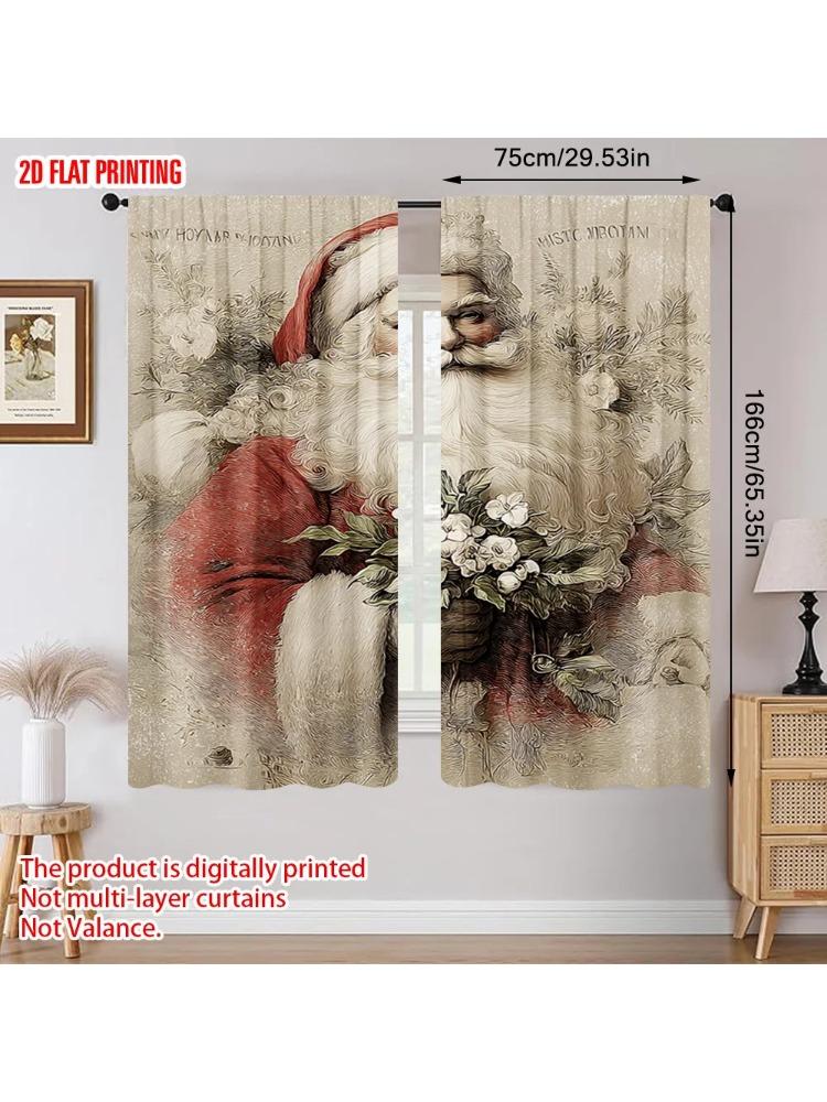 2pcs plane printing Popular Curtains Vibrant Santa with Holly & Berries Polyester Woven (without rod) Room Decor for Bedroom