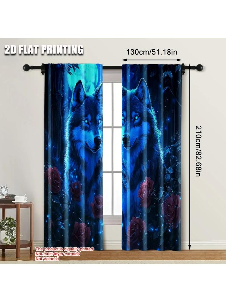2pcs Popular Curtain Panels plane printing Mystical Wolf & Blue Roses Polyester (without rod) Decorations For Home for Home
