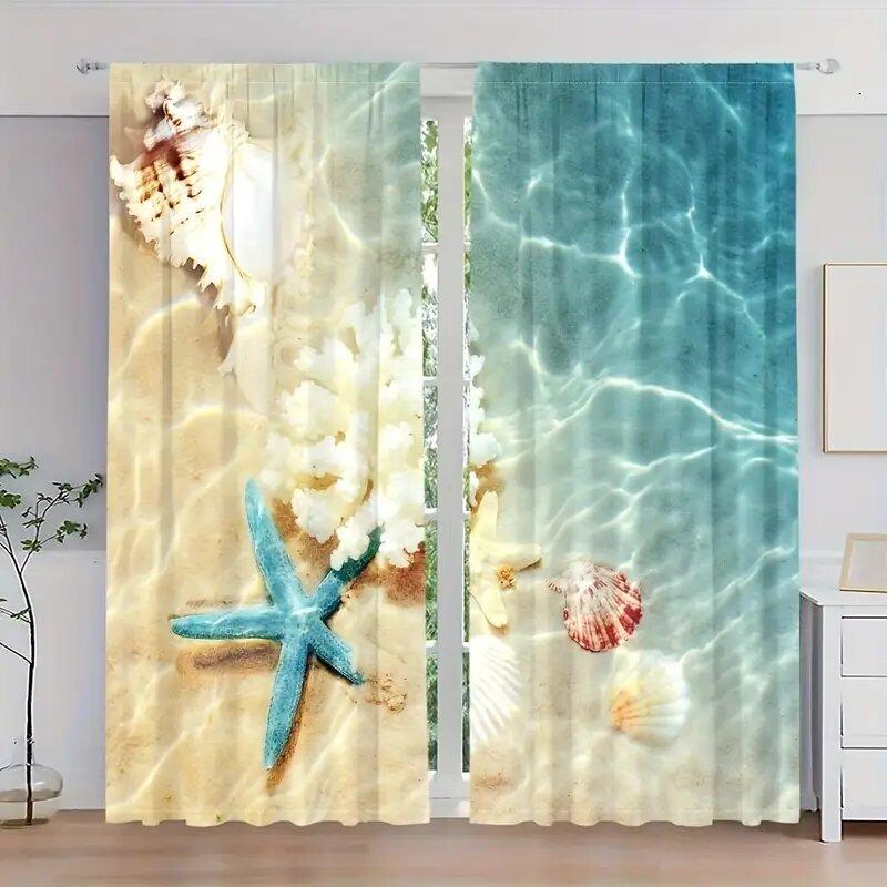 Colorful shell and starfish pattern printed curtains bedroom and living room decoration home decoration room decoration
