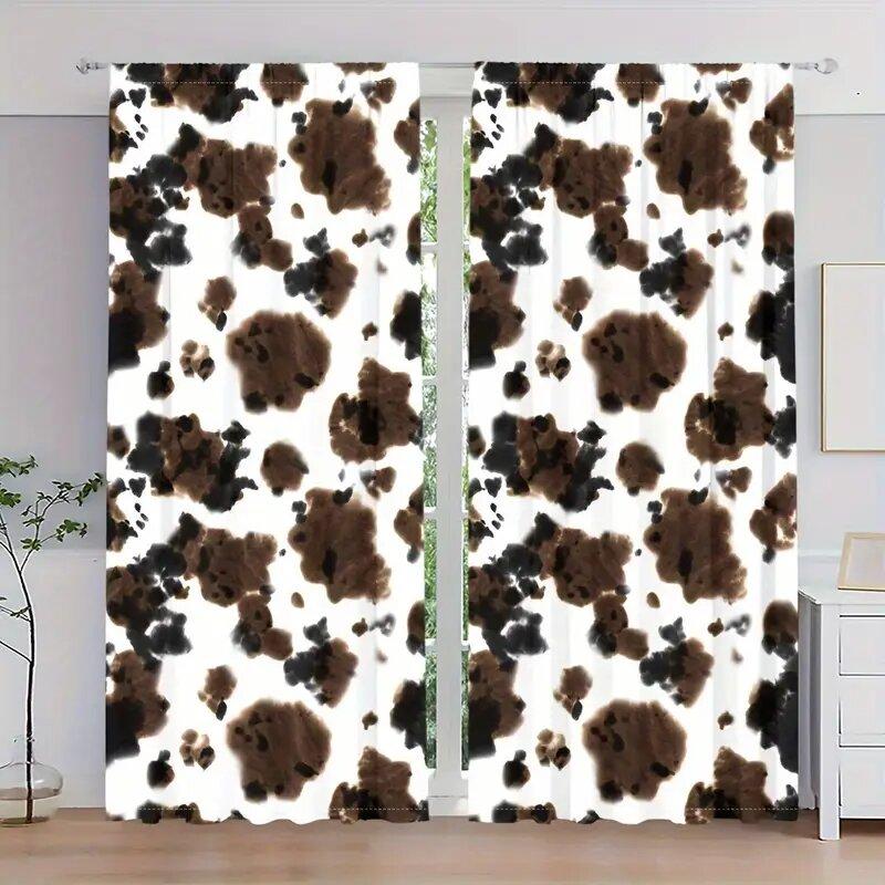 2 pieces - Textured cow spot pattern printed curtains window decorations home decorations room decorations