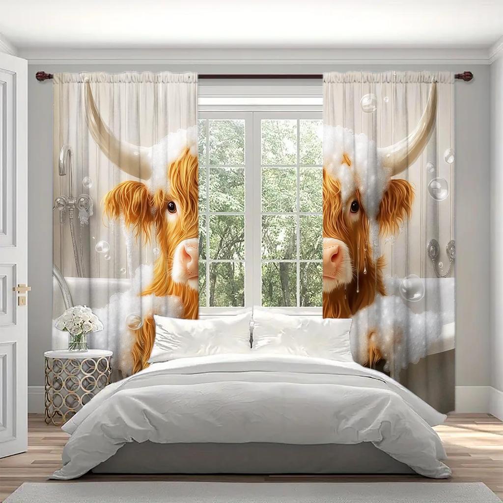 2pcs Cow That Loves To Take A Shower Printed Curtains Shade and Privacy Protection Suitable for Decorating Various Rooms