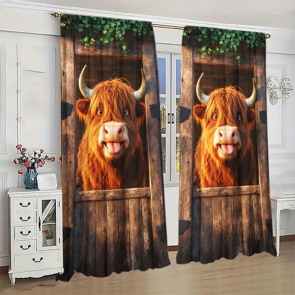 2pcs Cute Highland Calf Decorative Curtains Animal Themed Curtains Semi Blackout Curtains