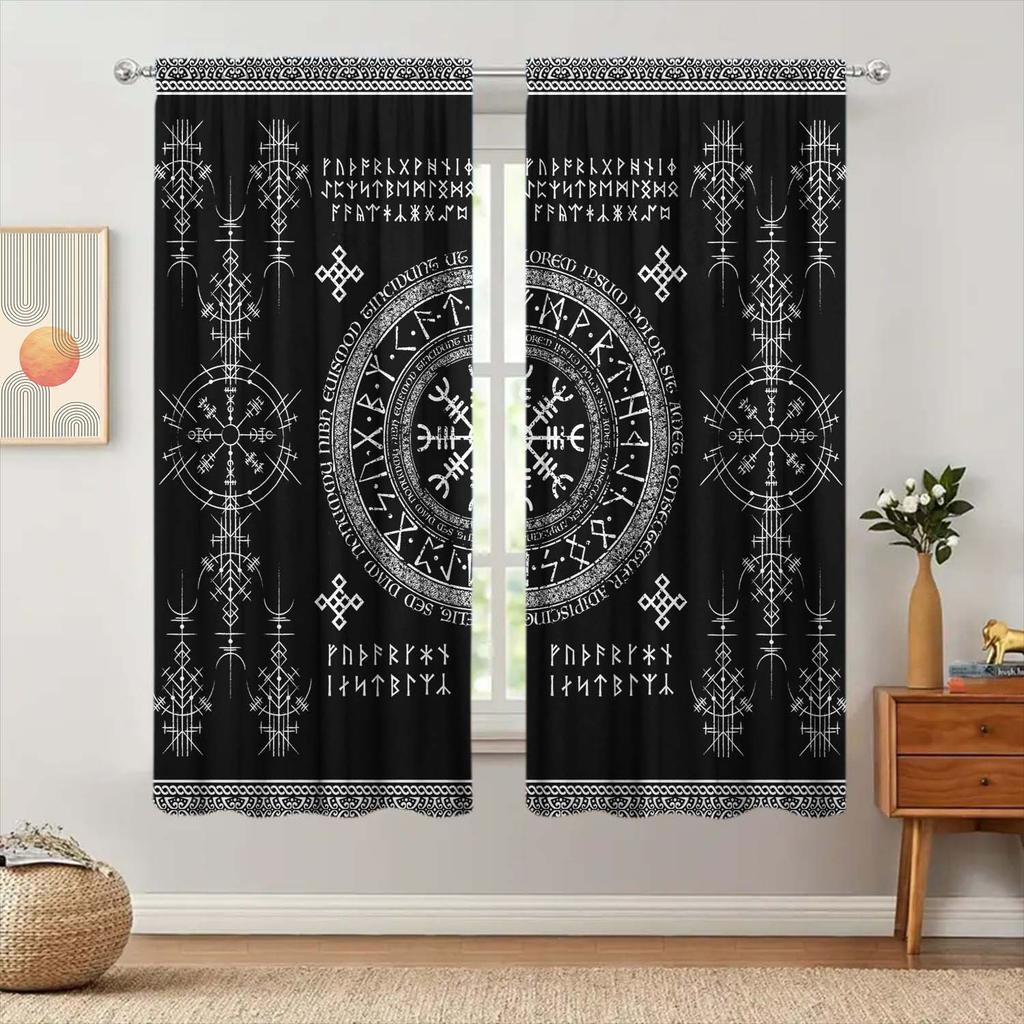 2-Panels Array Symbol Divination Design Curtains - Heat-insulating Suitable for Decorating Curtains in Various Rooms