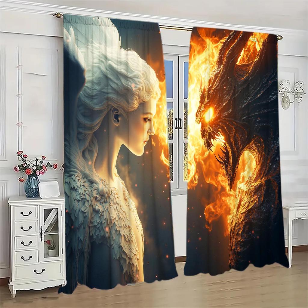 2 Panele Anioły Vs. Zasłony Okienne Wzór Diabłów Wszechstronny Design Pasujący do Każdego Stylu Tworzenie Spokojnej Przestrzeni Życiowej