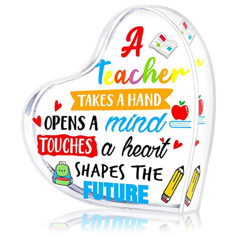 2D Flat, Heart-Shaped Acrylic Teacher Appreciation Desk Decor Plaque, Thanksgiving Gifts, Suitable for Wall Decoration, Porch, Room, Villa, Accents Ho