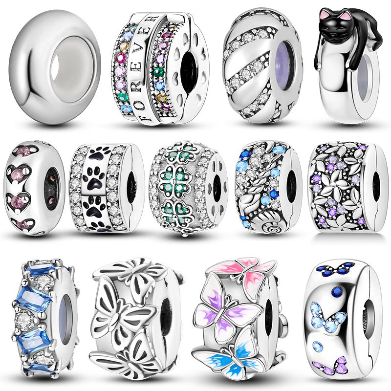 Original Clip Charm Butterfly Cat Fit Bracelet Diy Pave Cz Clasp Stopper Beads Fashion Jewelry
