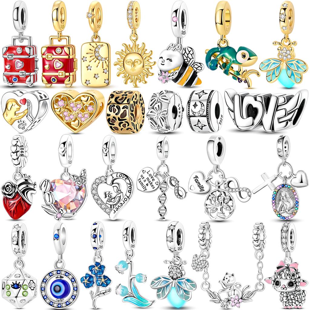 Copper Golden Sun Moon Luggage Charms Bead Zirconium Love Heart Clover Pendants Fit Original Bracelet Diy Jewelry