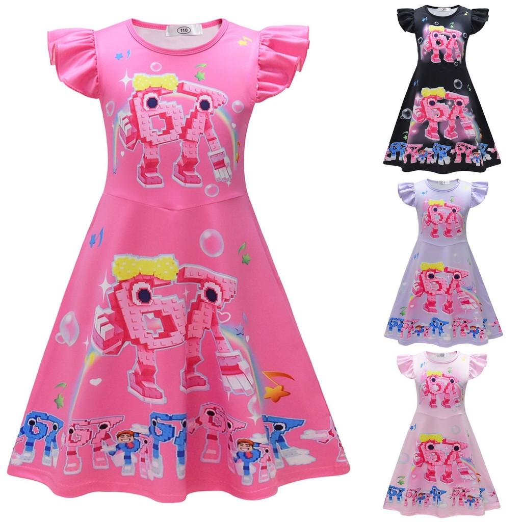 26249 Girls Steal a Brainrot 67 Printed Ruffle Casual Dress