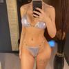 PU Skóra Ekologiczna Halter Mini Stringi Bikini Kobiety Stroje Kąpielowe Damski Strój Kąpielowy Dwuczęściowy Zestaw Bikini Kąpielówki Kostium Kąpielowy Kąpiel