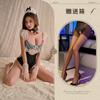 Sexy lingerie lace ruffle edge pure desire onesie tight crotch maid suit