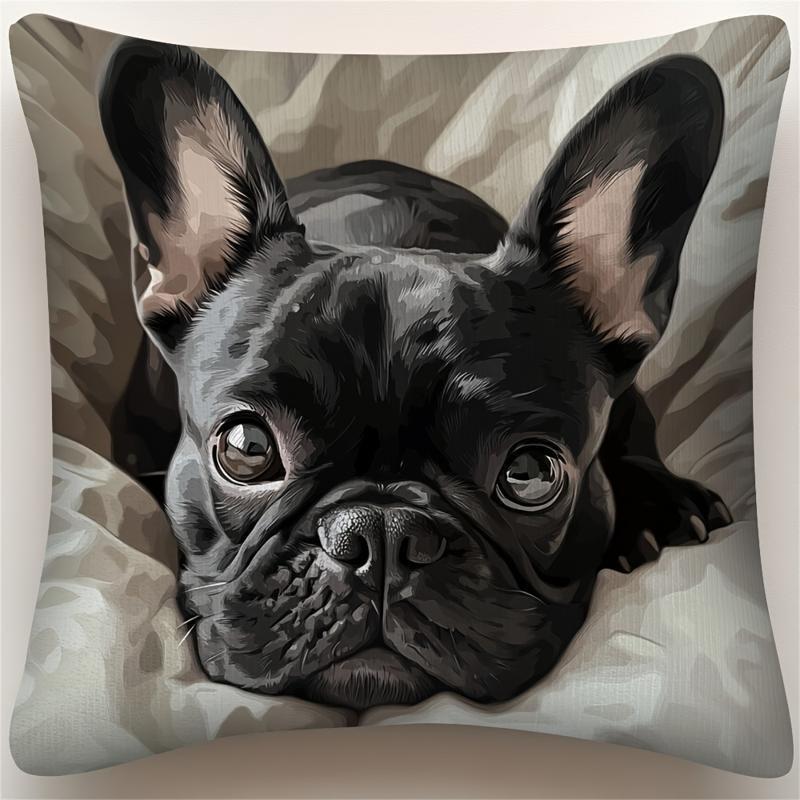 1 French doggie pillow cover, soft plush zipper design, single-sided printing