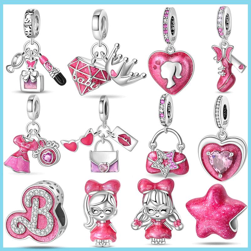 100% Copper Charms Beads Fit Brand Original Bracelet Fashion Pink Princess Skirt Bag Lipstick Charms Diy Jewelry