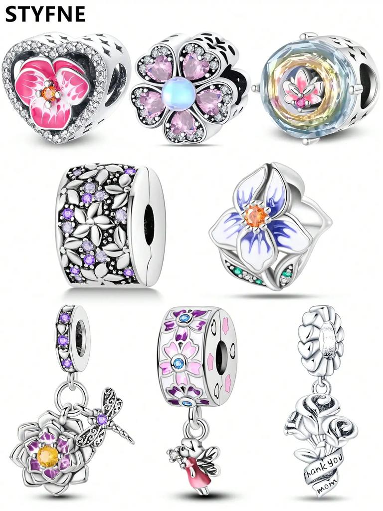 Charms Plata Copper Colors Flower Clips And Spacersbeads Charm Pendant For Original Bracelet For Women Diy Jewelry Love Gift