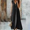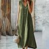 Women's Fashion V-Neck Sleeveless -Colour Casual Resort- Maxi Dress In Cotton-Linen Blend