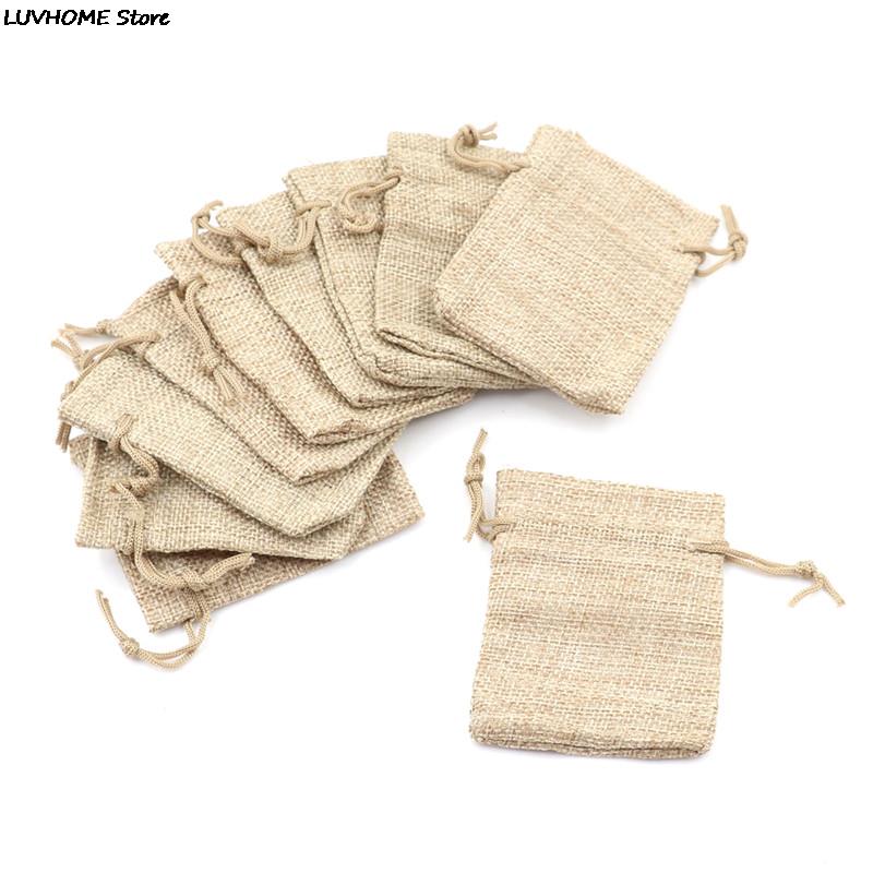 10 sztuk mały jutowy worek jutowy worek lniany worek ze sznurkiem materiały ślubne