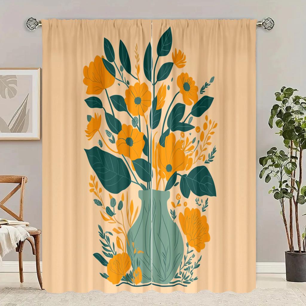 Botanical Floral Print Curtains 2-Piece Polyester Set for Bedroom Living Room Study Decor Elegant Blossom Window Treatment