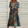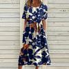 Damskie Casual Sukienki Sukienki z nadrukiem Letnie sukienki Z nadrukiem Plisowany Okrągły dekolt Midi Sukienki Podstawowy Klasyczny Na wolnym powietrzu Codzienny Krótki rękaw Luźne sukienki