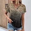 Women's T Shirt Tee Casual V-neck Short-sleeved T-shirt Printed Button Top
