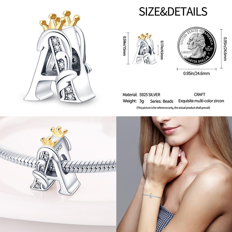 Classic Crown 26 Letters A-Z Copper Charms Fitoriginal Bracelets Diy Jewelry Making For Women Gift
