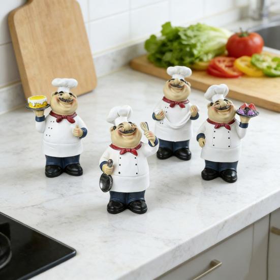 Perfectly sized to catch the eye without overwhelming your space, it fits beautifully on shelves, countertops, or desks. Versatile in use, this charming chef decoration enhances kitchens, dining rooms, cafes, or office areas with a playful yet elegant touch. Featuring unique symmetrical designs and varied chef postures, it brings coordinated energy and fantasy style to any environment.