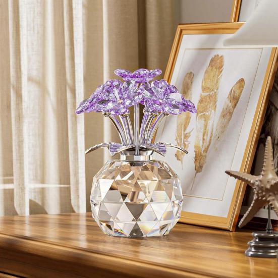 Najwyższej jakości rzemiosło z imitacji kryształu: Wykonana z wysokiej jakości sztucznego kryształu dla siedmiu kwiatów i podstawy, w połączeniu z trwałymi łodyżkami i liśćmi, ta figurka oferuje trwałe piękno.. Materiały imitują blask prawdziwego kryształu, zapewniając jednocześnie, że figurka kwiatu pozostaje żywa i nienaruszona w czasie, bez więdnięcia i blaknięcia.