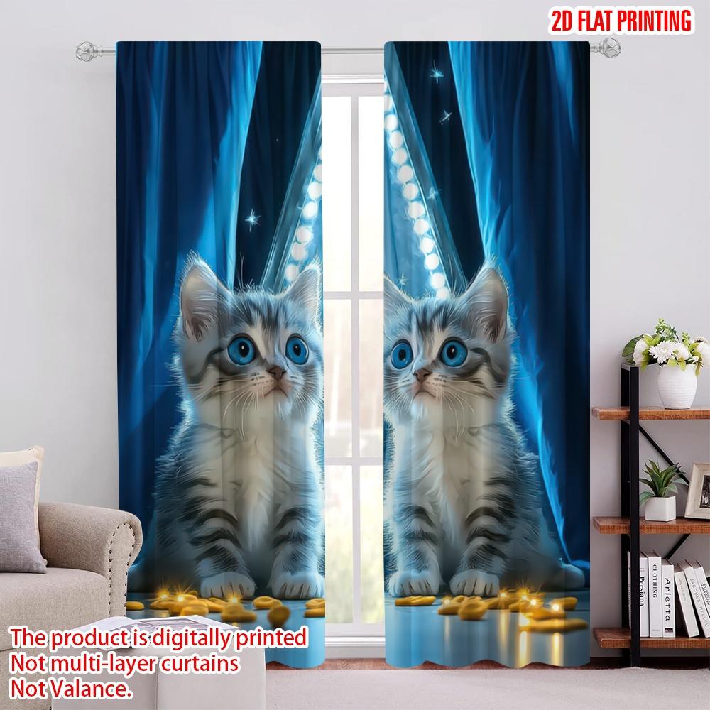 Druk płaski 2D 2 szt. Zasłony Sceniczne Uroczy Kot Trwały Poliester Bez Prądu Dekoracja Imprezy Wiosennej i Świątecznej Stosuje się do