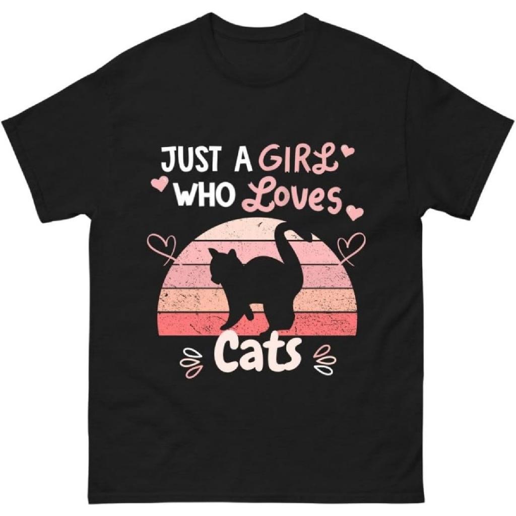 Just A Girl Who Loves Cats Shirt – Cute Cat Lover T-Shirt – Kitty Mom Graphic Tee for Women & Girls