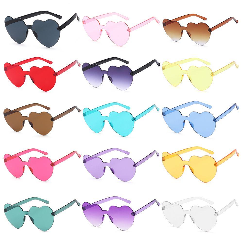 Heart Sunglasses Rimless Sunglasses for Women Heart Glasses Trendy Transparent Candy Color Eyewear
