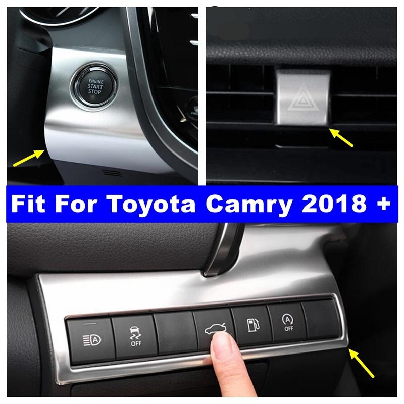 Head Warning Light Start Stop Engine Push Button Control Switch Panel Cover Trim For Toyota Camry 2018 - Silver Accessories