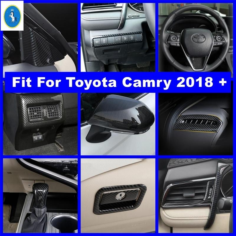 Rearview Mirror / Steering Wheel / Gear Shift Head Cover Kit Trim Fit For Toyota Camry 2018 - Carbon Fiber Car Accessories