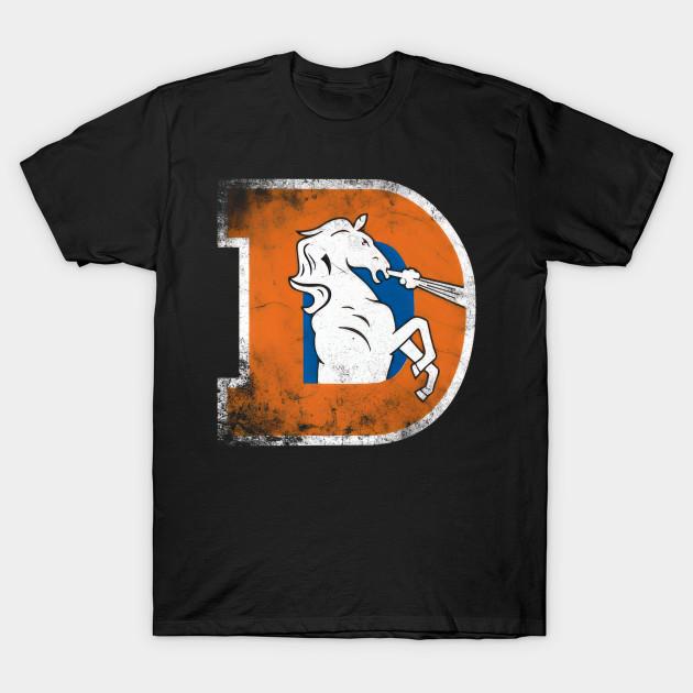 Men Black Print T-shirt Retro Denver Football No-Cut Transfer Paper Print Cotton Tshirt