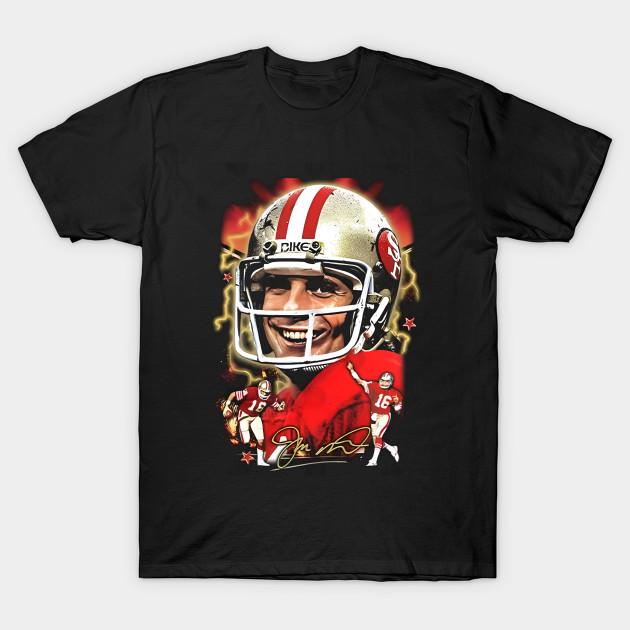 Men Black Print T-shirt Joe Montana Vintage Bootleg No-Cut Transfer Paper Print Cotton Tshirt