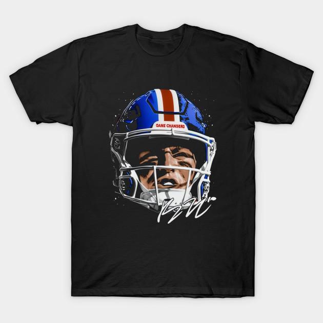 Men Black Print T-shirt Bo Nix Denver Helmet No-Cut Transfer Paper Print Cotton Tshirt