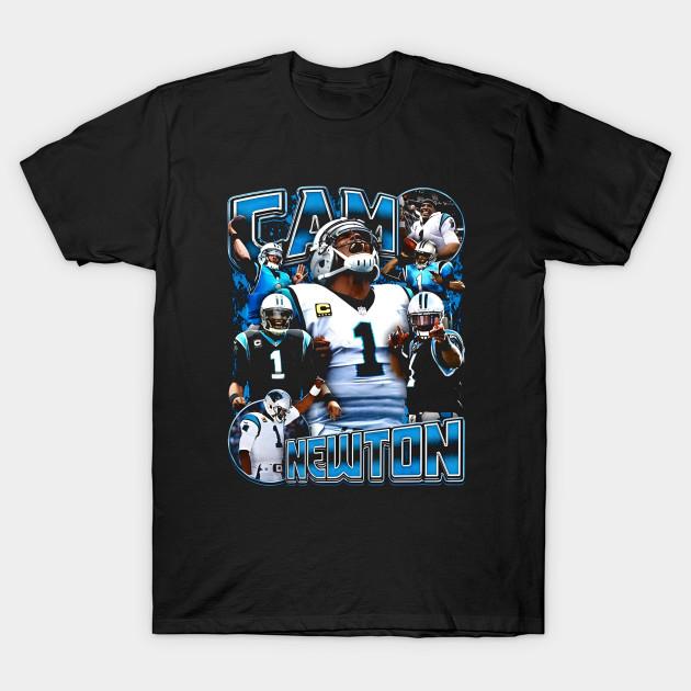 Men Black Print T-shirt Cam Newton Carolina Vintage Bootleg No-Cut Transfer Paper Print Cotton Tshirt