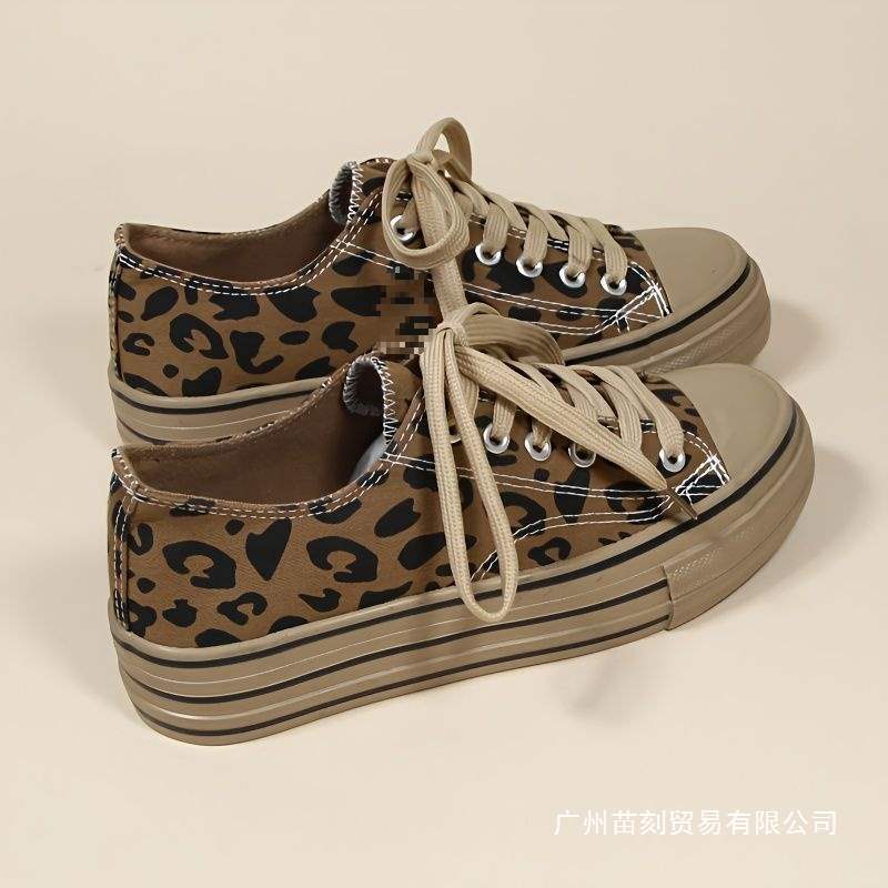 Canvas shoes women's spring and autumn leopard print trend Korean version of campus sports shoes thick-soled high street muffin bottom thick-soled ins