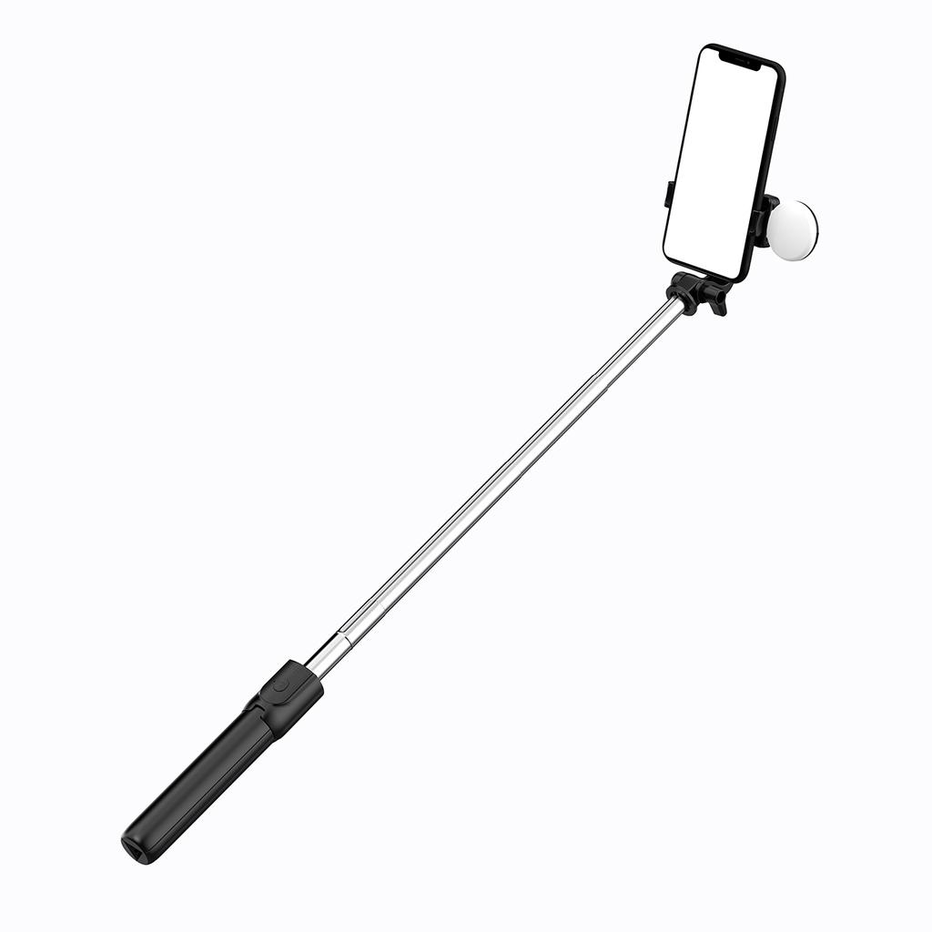 Telescopic selfie stick with remote control, LED lamp, phone tripod stand, 071m black