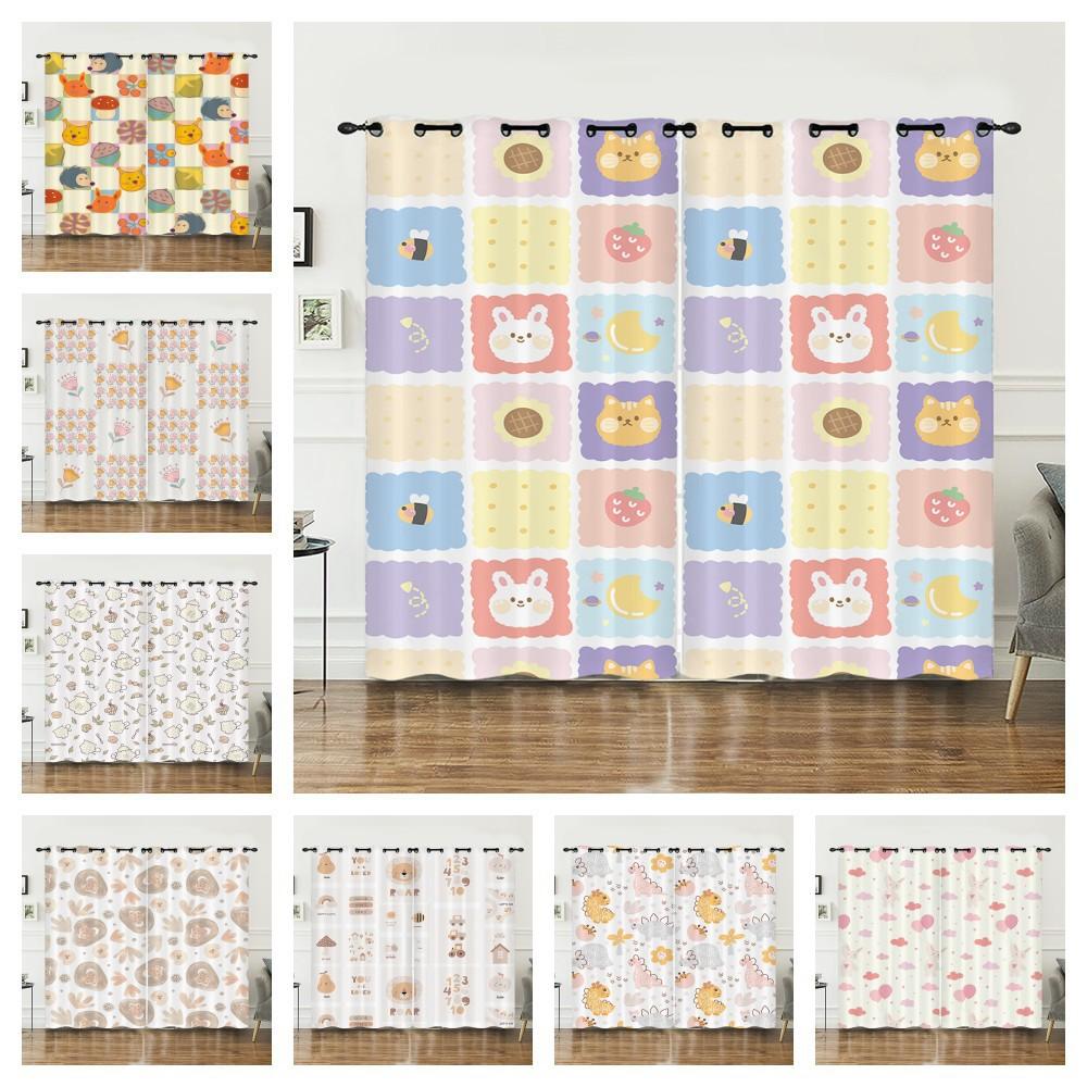 Curtain Cute Illustration Curtain Digital Printing Blackout Curtain No Punching