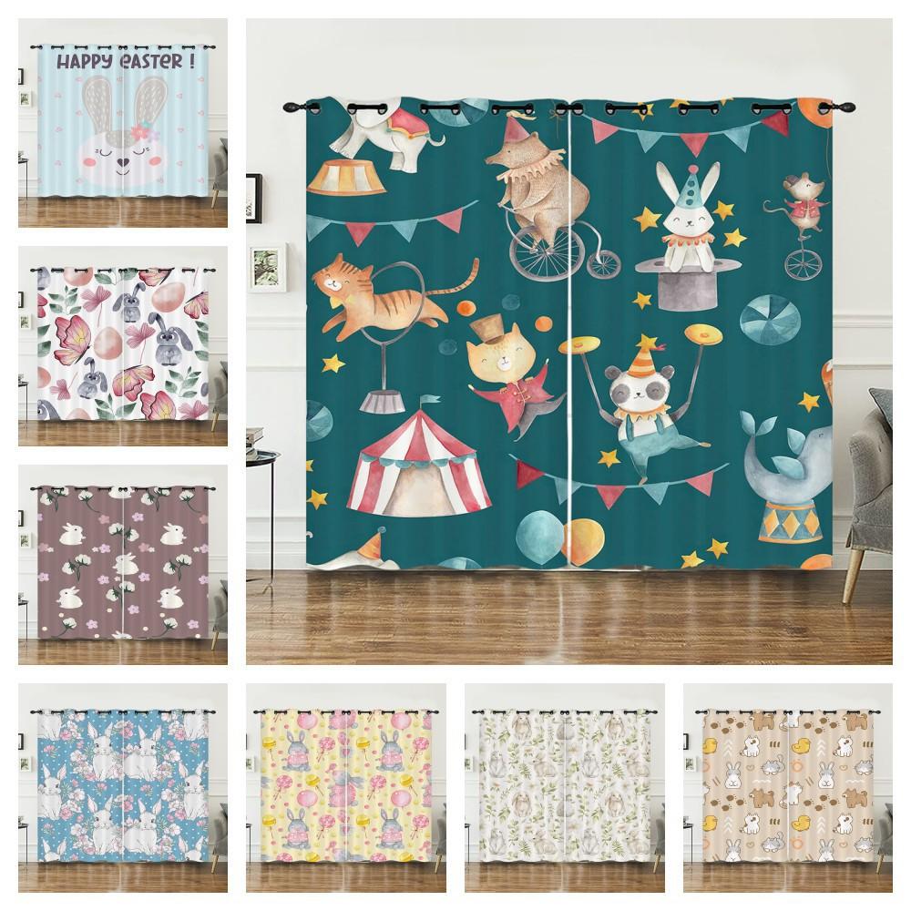 Curtain Rabbit Animal Illustration Curtain Digital Printing Blackout Curtain No Punching