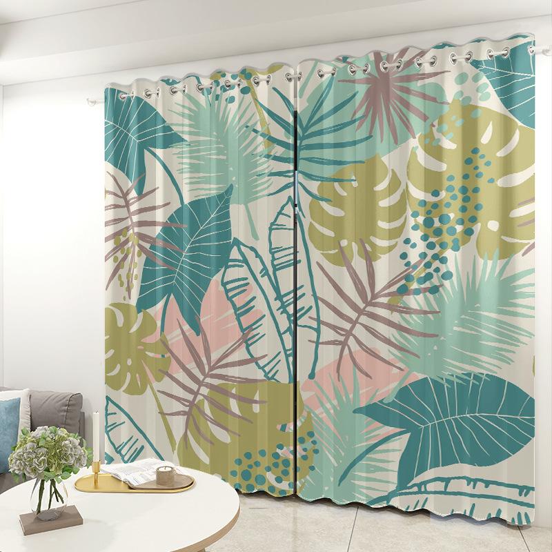Green Plant Plantain Leaf Curtain Cloth Bedroom Living Room Balcony Blackout Curtain Office Hotel Thermal Insulation Curtain