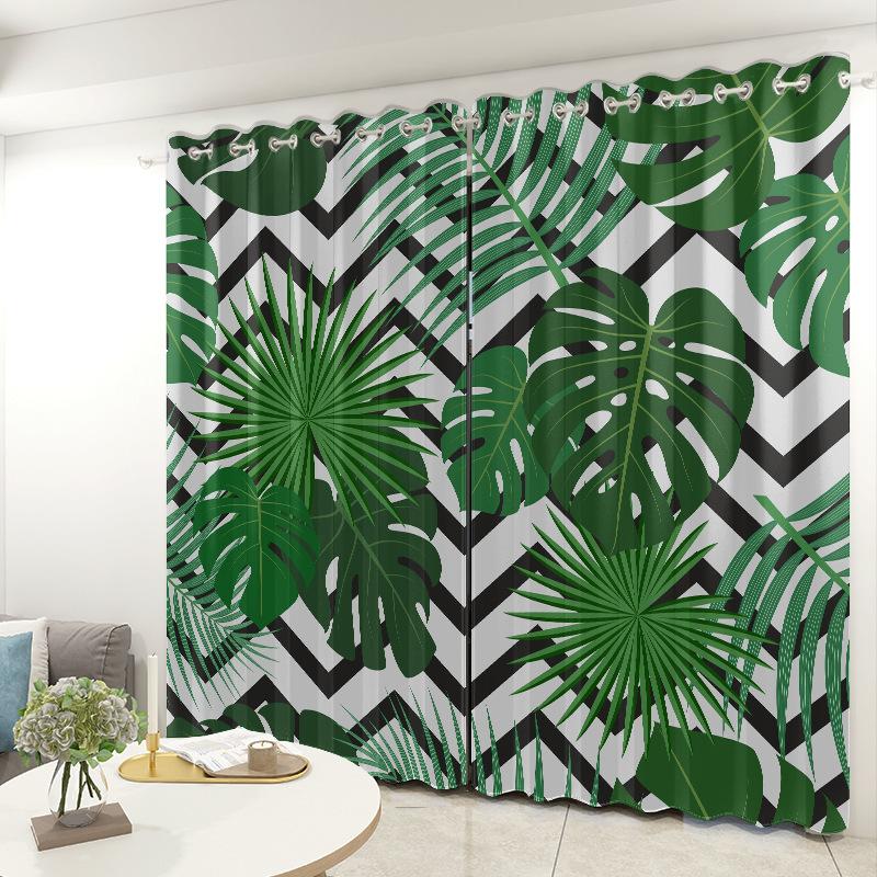 Green Plant Plantain Leaf Curtain Cloth Bedroom Living Room Balcony Blackout Curtain Office Hotel Thermal Insulation Curtain
