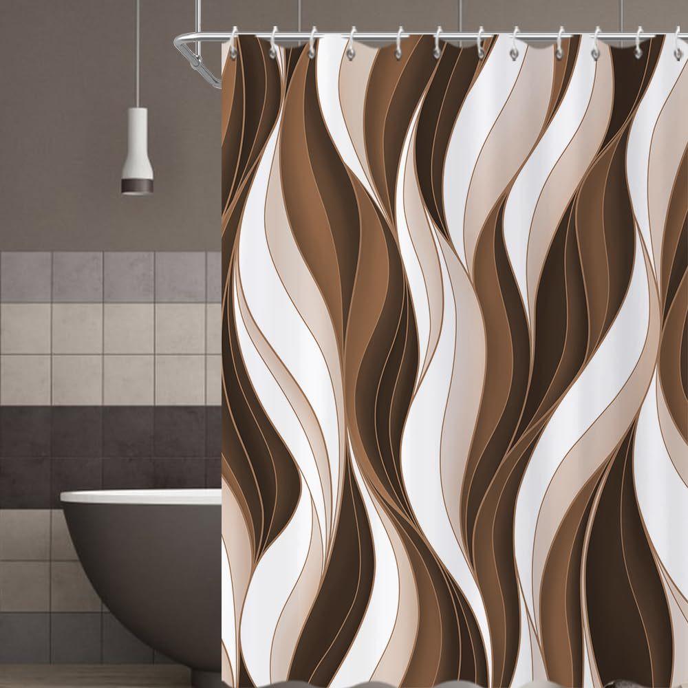 Brązowa Zasłona Prysznicowa Nowoczesna Abstrakcyjna Brązowo-Białe Paski Stopniowa Zmiana Prosta Zasłona Łazienkowa Wodoodporna Tkanina Można Prać w Pralce Z Haczykami